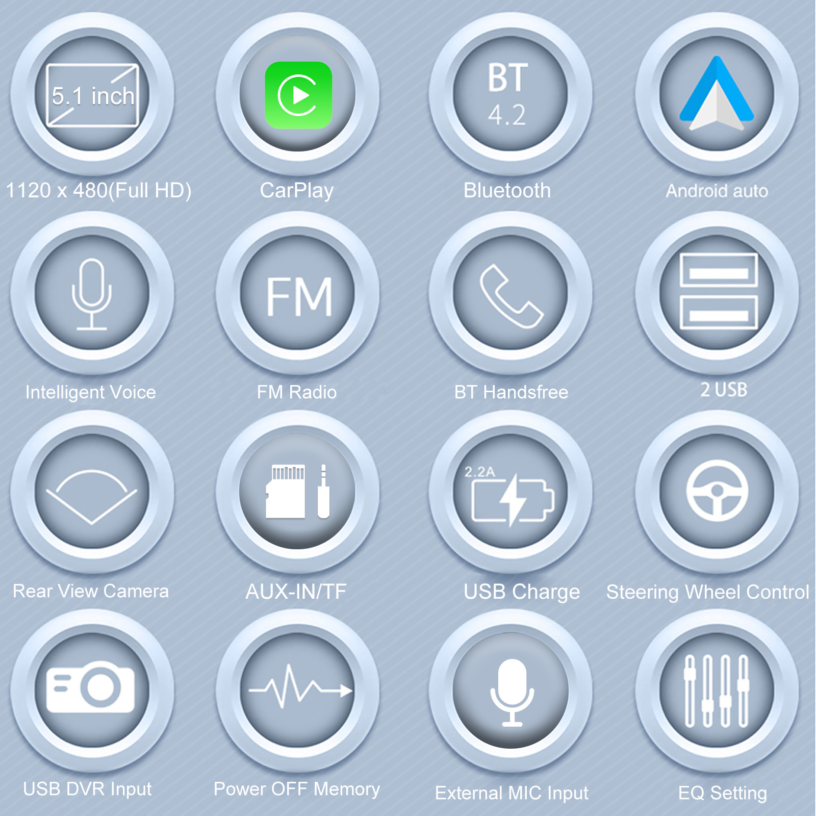 - Mirror Link: Carplay & Android Auto & Mirror Link