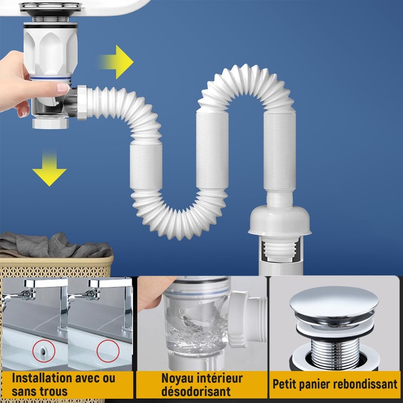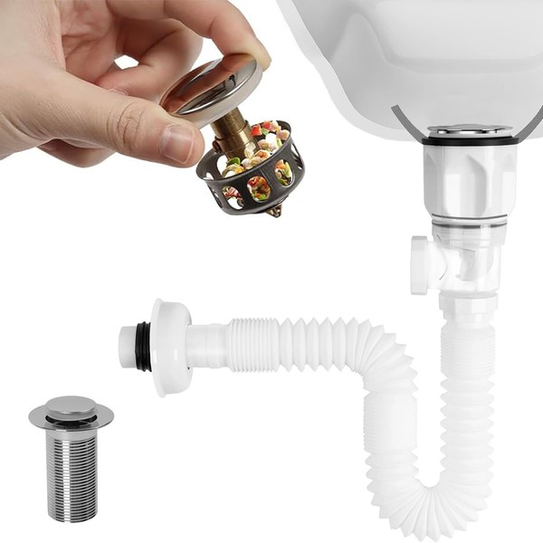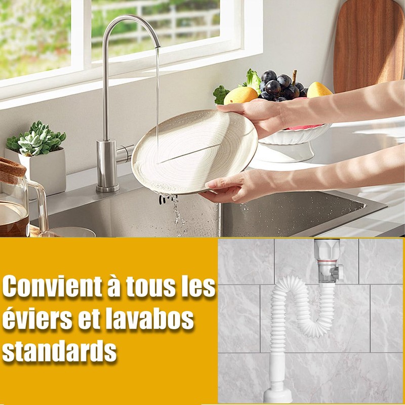 Esshogo Drip Tray for Sink, Universal Syphon Sink, Kitchen, Adjustable, Flexible, Flexible Drain Hose, Sink Drain Suitable for Bathroom, Extendable from 230-800 mm
