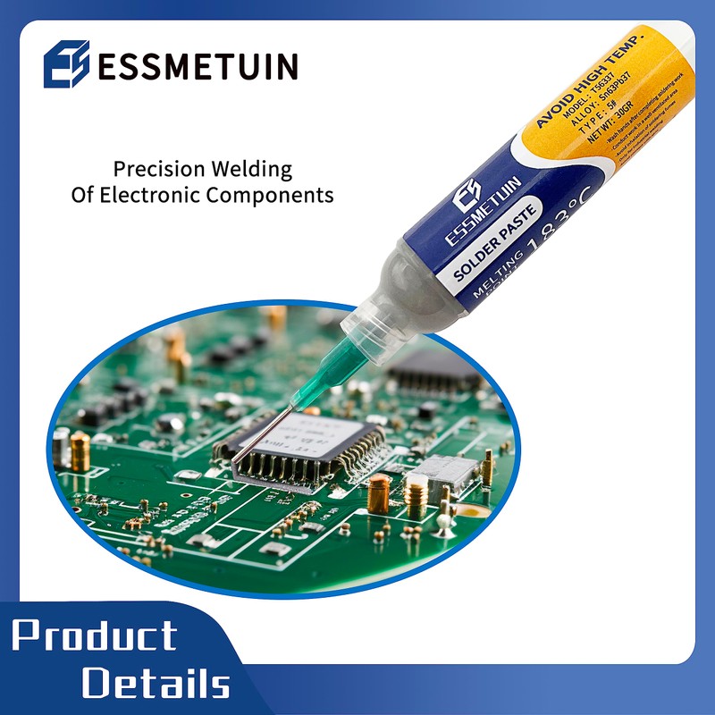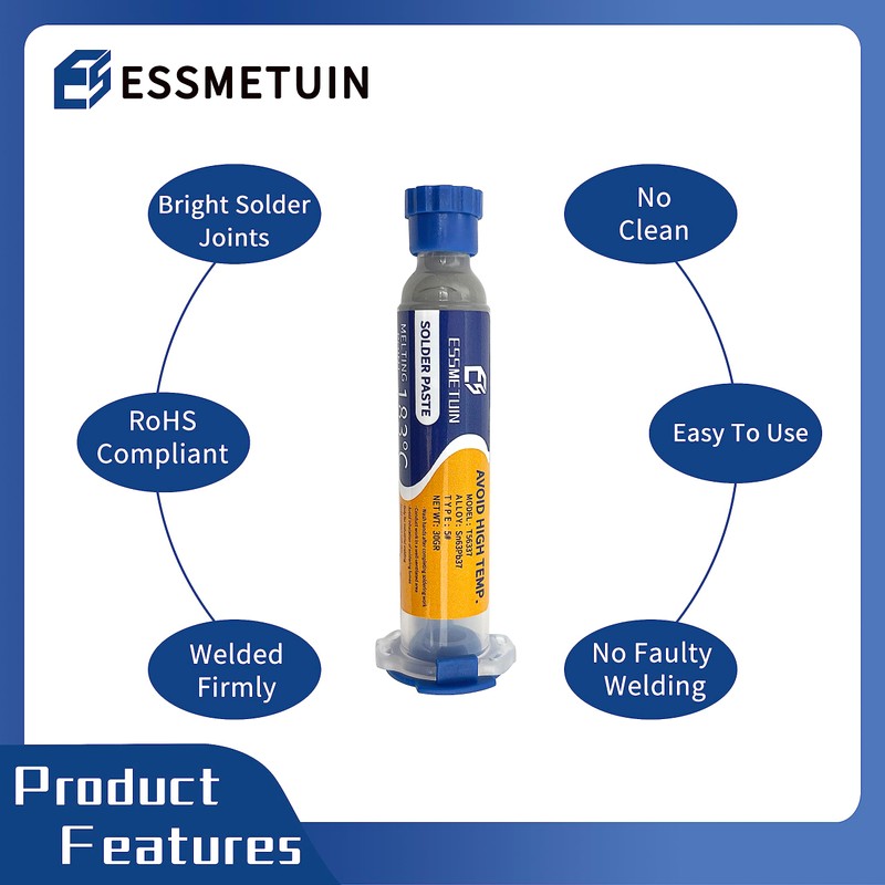 Essmetuin Solder Paste (Sn63/Pb37 T5 30G) For Electronic Soldering, No-Clean Tin Lead Paste, Soldering Paste For PCB/IC/BGA/SMD CELLPHONE CPU Repairing