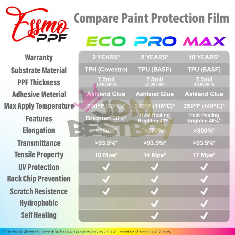 ESSMO™ 5FTx10FT PPF Paint Protection Film Gloss Piano Black Invisible Scratches Shield