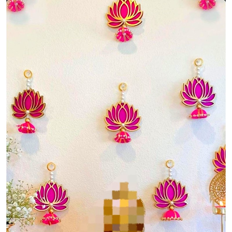 Estationeryhouse Rani Pink lotus/Varamahalakshmi/Lakshmi decor/Gruhapravesham decor/Seemantham decor/Lakshmi pooja/Ugadi/Sankranthi/Indian backdrop 10 pc Active