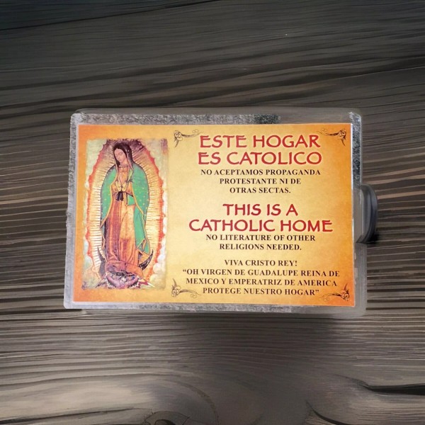Este hogar es catolico te permite mantener alejadas las visitas tan molestas Los Domingos o los dias de descanso de sectas religiosas de otras creencias, contrarias a nuestra Fe Catolica… Ordena el tuyo hoy. Laminado para que resista mas las inclemencias de afuera