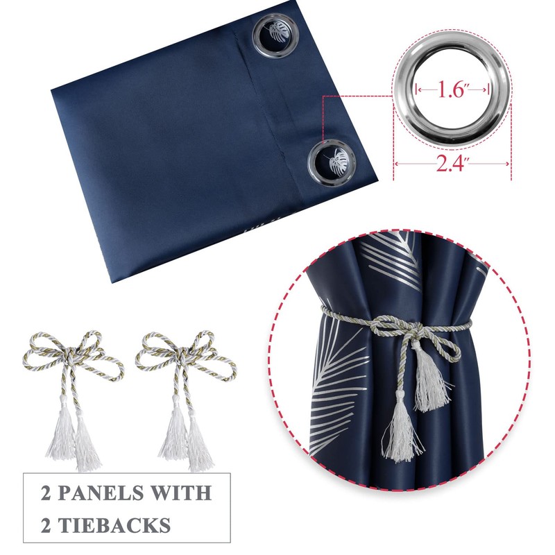 - PACKAGE INCLUDES: Each package includes 2 blackout panels and 2 tassel ropes. Each panel measures 52W x 96L inch with 8 silver anti-rust grommets (1.6 inch inner diameter)