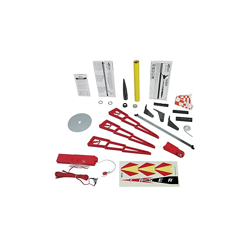 Product DescriptionThe Taser Launch Set is a great kit from the Easy to Assemble (E2X) Series. You'll be ready in no time for another extreme launch experience. Using standard Estes engines, amazing heights of 1,000 feet can be reached! Rocketeers aged 10 and up can enjoy high-altitude thrills, with adult supervision for children under 12. For your launching convenience, an Estes launch pad and controller are included in the set.The Taser is a reliable, high performance rocket for kids of all ages to enjoy.Amazing heights of 1,000 feet can be reached with your completed Taser.3, 2, 1, Lift Off!The Taser Launch Set from Estes is an exciting, radically designed, high altitude rocket launch set from the E2X (Easy to Assemble) series. The rocket kit features a brightly colored one piece body tube, molded plastic fin set and bullet shaped nose cone. The Taser rocket is 16.5 inches tall. Simply glue a few rocket pieces together, apply the colorful self-stick decals and in less than an hour you'll be ready for the launch pad. A bright-colored 12 inch preassembled parachute returns this rocket back to the launch site. It also comes with an Estes launch pad and launch controller for your rocket launching convenience (four 'AA' alkaline batteries required C sold separately). Adding to your growing fleet of Rockets? Check out another high powered Estes Classic, the impressive Blue Ninja E2X Model Rocket Kit, which uses the same launch system that comes complete with the Taser!Blast Off to Learning FunIn addition to the excitement and entertainment it provides, rocketry also has significant educational value. Model rockets transform kids into amateur rocket scientists, encouraging them to think about how the rockets work. Rocket building teaches kids the basics of propulsion, flight, and aerodynamics, and can help foster an early interest in science and engineering. As a part of the E2X series, the Taser can be assembled in about one hour. No special tools or painting are required for this kit, leaving more time for flying. Simply glue the parts together according to the instructions, apply decals and attach the parachute. The Taser is a reliable, high performance rocket for kids of all ages to enjoy.Mission ControlThe Taser requires Estes engines for the launch (not included). Start with the A8-3 engine for the first flight. Use Estes engines B4-4, B6-4, B6-6, C6-5 or C6-7 for subsequent flights. Unless otherwise specified, all models require assembly. Tools, construction and finishing supplies sold separately. In order to launch, a launch system, model rocket engines, igniters, recovery wadding and four 'AA' alkaline batteries are required C sold separately unless otherwise specified. Read all instructions before beginning. Make sure you have all parts and supplies required. Test fit all parts before applying glue. Sand as necessary for precision assembly. Product color and shape may vary. When launching, stand back as far as the launch controller cord will allow (15 feet). Rocketry is not intended for indoor use. Choose a large field (500 feet), free of dry weeds and brown grass. Launch only with little or no wind and good visibility.What's In The Box?Taser rocket, Plastic Fins, Self-stick Decals, 12 inch preassembled parachute, Electron Beam Launch Controller, Porta-Pad II Launch Pad and instructions.With all the parts you need for your launch included, just add the engines and you'll be ready for the launch site in less than an hour.From the ManufacturerThe Taser is a stunning rocket that's capable of subduing anything out there that's dangerous. The Taser Launch Set from Estes is an exciting, radically designed high altitude rocket launch set from the E2X (Easy to Assemble) series. The rocket kit features a brightly colored one piece body tube, molded plastic fin set and bullet shaped nose cone. Simply glue a few rocket pieces together, apply the colorful self-stick decals and in less than an hour you'll be ready for the launch pad. The Taser rocket is 16.5 " (41.9 cm) tall. With its custom three-fin design, it climbs to an outta sight altitude of over 1,000 ' (305 m). A bright-colored 12 " (30 cm) preassembled parachute returns this rocket back to the launch site. You'll be ready in minutes for another extreme launch experience. This launch set comes complete with the Taser rocket, Estes controller and launch pad. Glue, engines and 4 AA batteries required (for your controller) - sold separately. Recommended for ages 10 and up with adult supervision for those under 12.