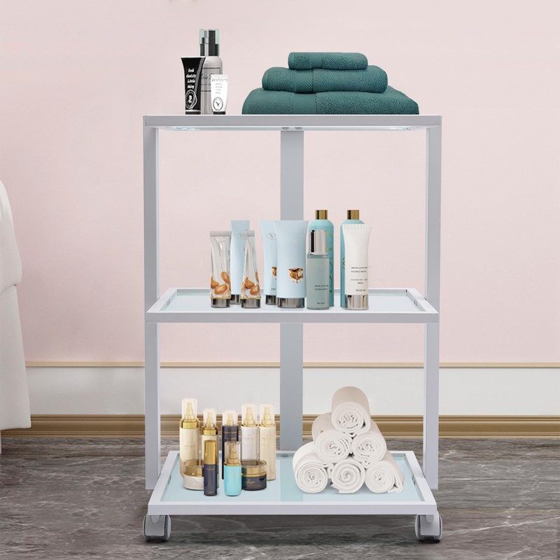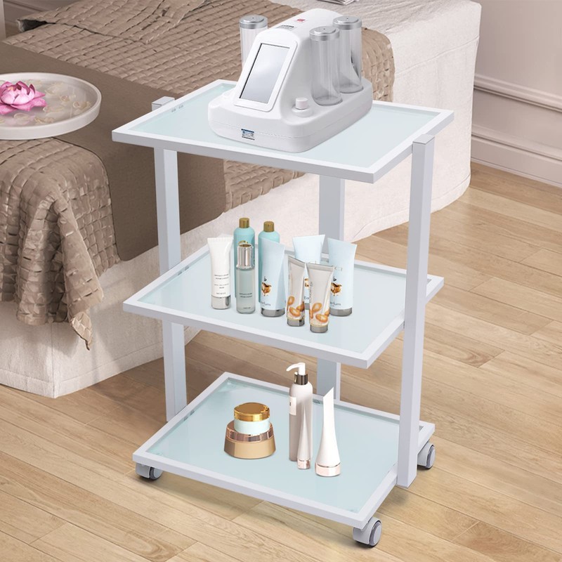 Esthetician Cart 3 Tier Beauty Trolley Cart Utility Salon Rolling Trolley Mobile Storage Organizer for Beauty Spa Cosmetology Load 330lbs White