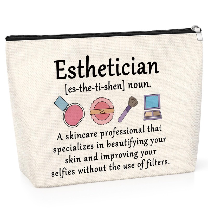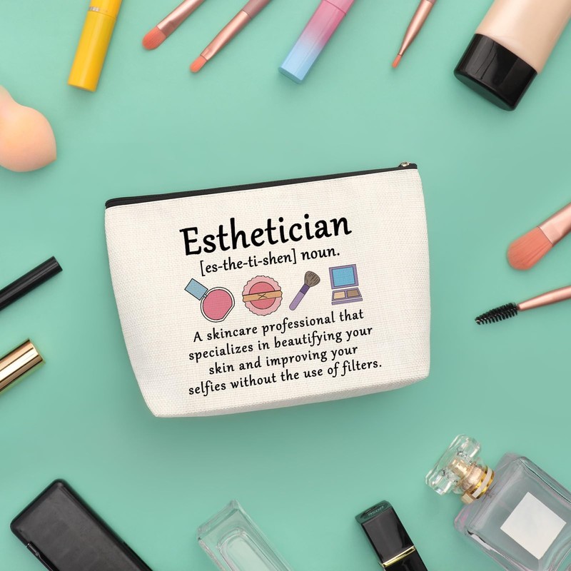 - Esthetician Gifts for Women:The makeup bag is imprinted with "A skincare professional that specializes in beautifying your skin and improving your selfies without the use of filters.", an inspirational makeup bag specifically designed to show your support, appreciation, or gratitude to the beauticians in your life. inspirational makeup bag.