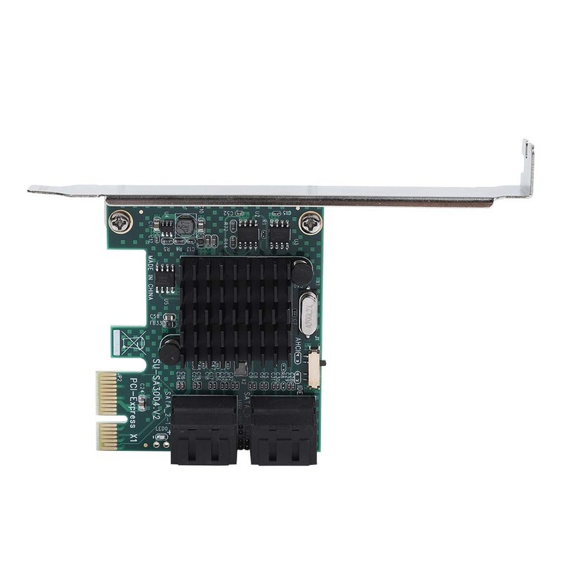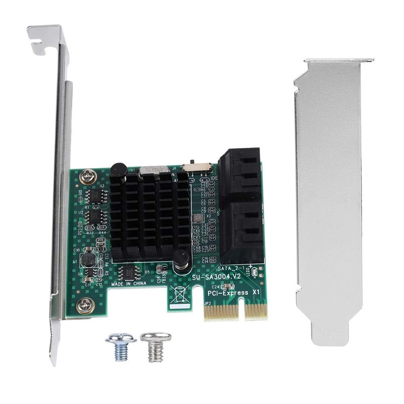 Eigenschaften:1. Hintere SATA3.0-Schnittstelle: Das neue Upgrade erweitert die vier hinteren SATA3.0-Schnittstellen, die besser f1r enge R?ume geeignet sind. 2U kann auch besser repariert werden; Von der hinteren Verkabelung gibt es keine 1berkreuzung mit der Grafikkarte.2. 4U, 2U universal: Dieses Produkt ist mit 4U, 2U doppelten festen Halterungen ausgestattet, die von gro?en oder kleinen Chassis getragen werden.3. Gr??erer K1hlk?rper: Bessere W?rmeableitung und besser geeignet f1r lange Arbeitsstunden.4. PCI-E-Schnittstelle: Die Installation im PCI-EXPRESS-Steckplatz des Geh?uses mit einer dicken vergoldeten PCI-E-Schnittstelle ist einfach. Ein besserer und eine einfache Daten1bertragung k?nnen die Datenverlustrate effektiv reduzieren.5. Das Heck ist b1ndig ausgelegt: Die Wahrscheinlichkeit, den Grafikkartenl1fter zu blockieren, ist geringer.6. Vierschichtige Leiterplatte mit Isolationsschicht in der Mitte f1r eine st?rkere Entst?rungsf?higkeit.7. Auswahl des Originalmodus: AHCI, IDE, Datenfestplatte, drei Modi k?nnen frei gew?hlt werden.Spezifikation:Modell: SA3004Busschnittstelle: PCI-E X1 (kompatibel mit X4, X8, X16 / Grafikschnittstelle)Anzahl der Schnittstellen: SATA3.0-Schnittstelle * 4Systemunterst1tzung: f1r das Betriebssystem XP / 2003 / Vista / / / (32/64 Bit)Gr??e: ca. 120 * 65 * 56 mm / 4,7 * 2,6 * 2,2 Zoll (wie die Bilder zeigen)Ungef?hres Gewicht. 89 gPaketliste:1 * Erweiterungskarte1 * 2U Schallwand2 * Schraube