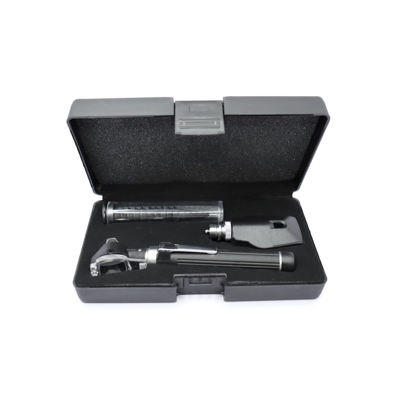 Oftalmoscopio fabricado con los mejores materiales y tecnología de punta, su mango está compuesto por dos materiales, aluminio y fibra de vidrio reforzado de alta calidad, incluye clip para su fácil desplazamiento.