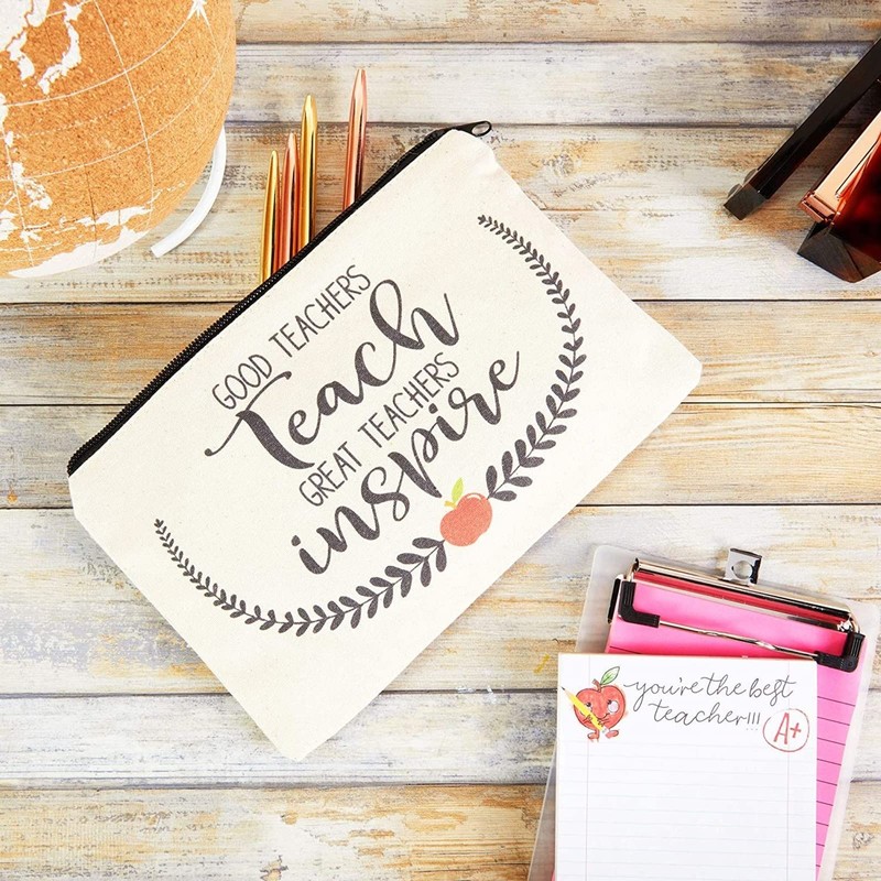 - Apreciación del profesor: nuestras bolsas vienen en 5 diseños surtidos, incluyendo "Teacher Stuff", "Teachers Gonna Teach", "Teach Love Inspire", "Good Teachers Teachers Teach, Great Teachers Inspire" y "La influencia de un increíble profesor nunca se puede borrar"