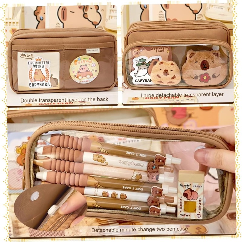 - 【Diseño llamativo】Trae una sonrisa a tu cara cada vez que abras nuestro estuche con cremallera en forma de capibara. Los atractivos patrones de dibujos animados llamarán la atención de todos y te harán destacar en clase reuniones.