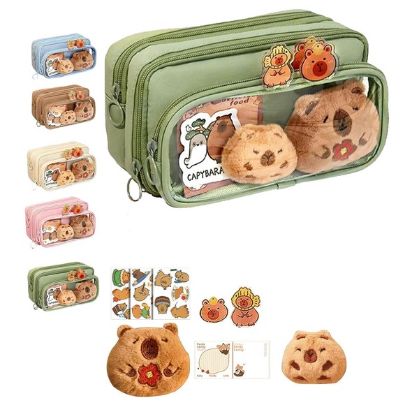 Estuche para lápices de Capibara, Bonito Estuche para Lápices de Carpincho, Eustache Para Lápices Multicapa De Gran Capacidad, Estuche De Capibara(Verde)