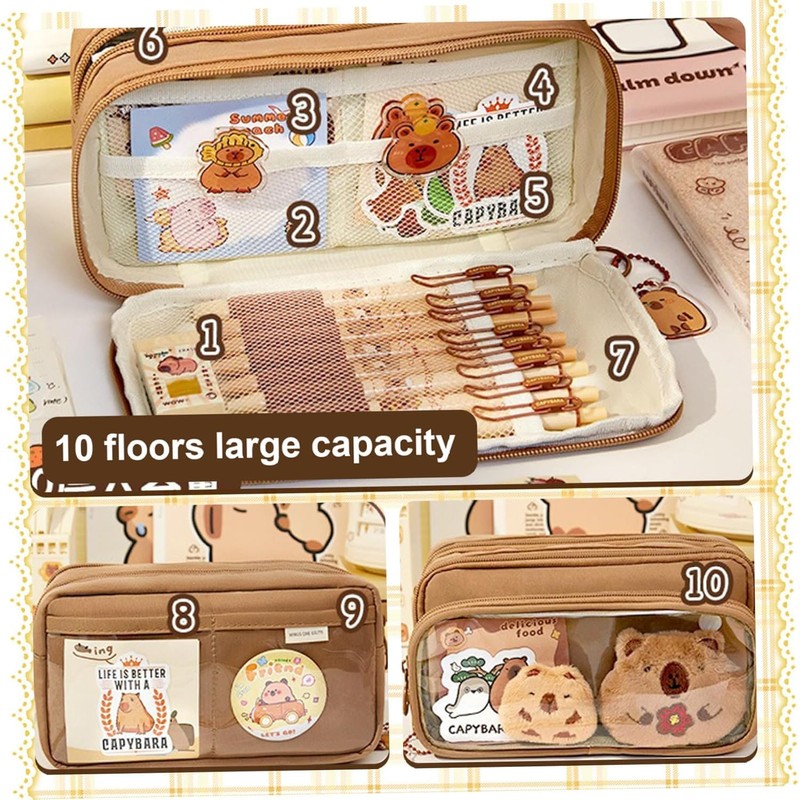 - 【Diseño llamativo】Trae una sonrisa a tu cara cada vez que abras nuestro estuche con cremallera en forma de capibara. Los atractivos patrones de dibujos animados llamarán la atención de todos y te harán destacar en clase reuniones.