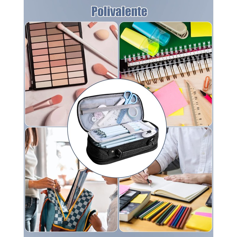 - Versatilidad multifuncional: Esta bolsa se adapta a diversas necesidades y puede ser utilizada como estuche y organizador de papelería para estudiantes, portalápices para material de oficina, organizador de cosméticos/artículos de aseo, bolsa de viaje, caja de herramientas, bolsa para el móvil y pequeño organizador.