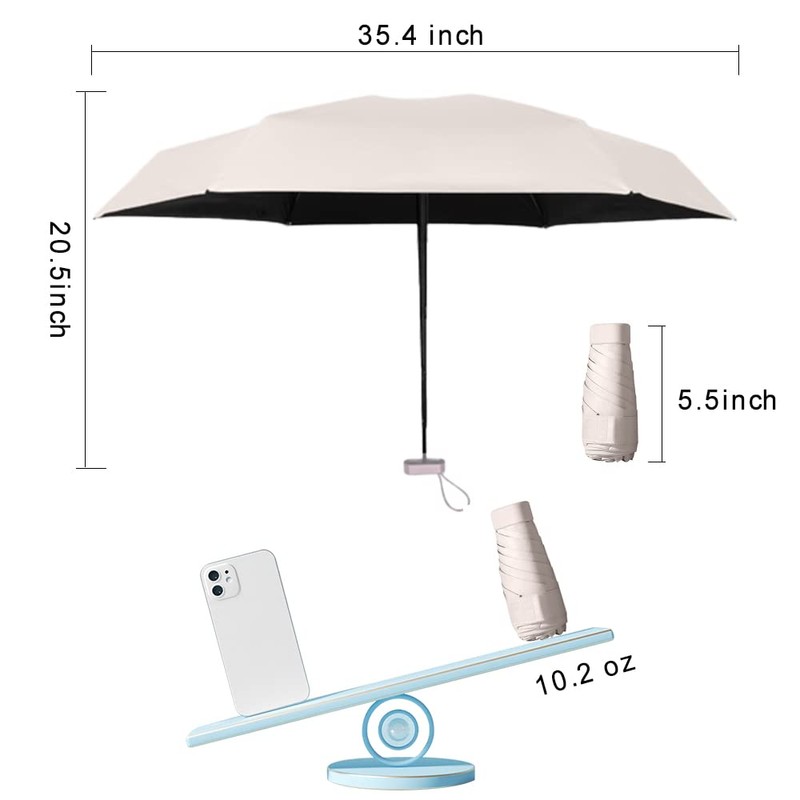 - Compact Travel Umbrella:This mini umbrella is only 10 oz weight,5.5 inch length yet open to form a large 35"canopy,fitting perfectly in your handbag,briefcase,suitcase or backpack.Perfect for travel,business,camping and daily use
