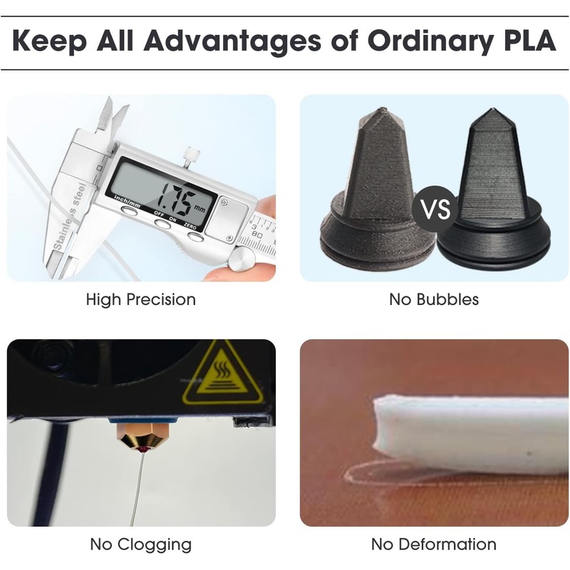 - 【 Easy to Print】PLA+ is an enhanced version of ordinary PLA. It has higher strength and better toughness, not easy to break. low shrinkage, no deformation, no cracking, high printing precision. Made with starch raw materials derived from plant resources, ideal for indoor printing.