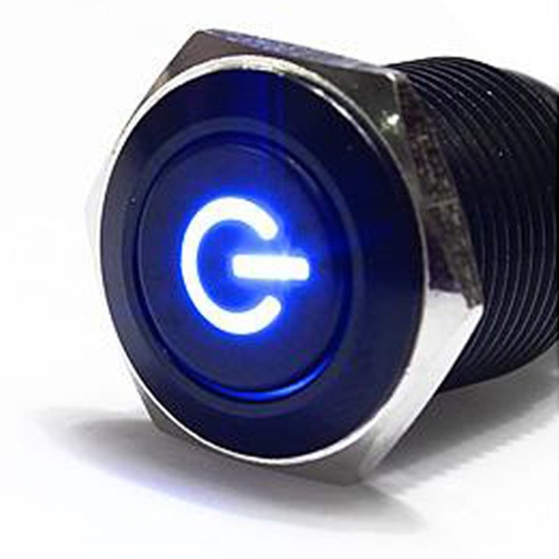 ESUPPORT 16mm 12V 3A Car Blue LED Light Power Metal Push Button Toggle Switch Socket Plug Latching Black Shell