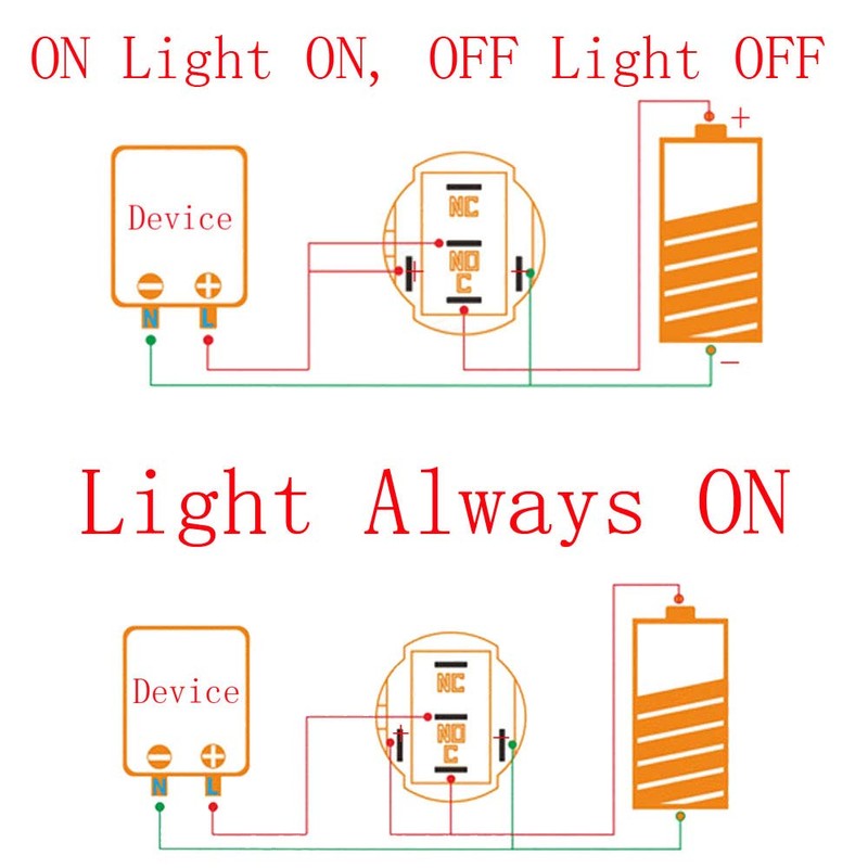 - Latching type: push it -- ON (OFF) , push it again -- OFF (ON)