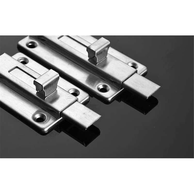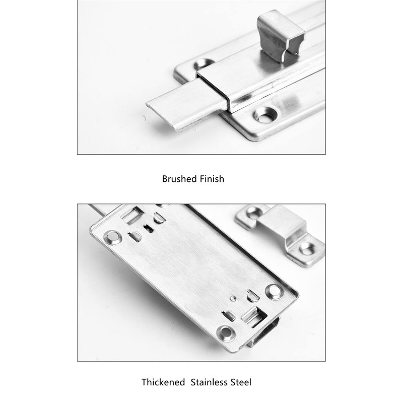 When your room does not have an internal lock,anyone can push the door and walk in.You feel insecure and no privacy.Providing security and privacy for your self,home and friends.Color:SilveryMaterial:Stainless SteelSize:2.5",3",4"Installation:Screwed InIt can be installed vertically or horizontally,generally on both sides,the bolt can be pushed left and right,and the bolt lock can also be installed up and down.Easy to Install.Suitable for doors,cabinets,bathrooms,toilets,windows,furniture,pet doors,etc.Slide latch lock can be installed on the door of the office,bedroom,bathroom,toilet,study and other places.Add More Security.When you want to prevent children or pets from opening doors or cabinets,you can install slide door lock in a higher position so that children or pets cannot reach door bolt lock.Please Note:It is best not to install slide latch lock on a door that is not fixed on both sides,which is easy to shake.Slide lock is suitable for installation on a doorthat has at least one side fixed,such as a door on one side and a wall on the other.Installation Tips:If you want barrel lock to be installed more firmly and securely,you can replace the screws we provide with longer and harder screws for installation.Package Includes:6x Barrel boltsScrews