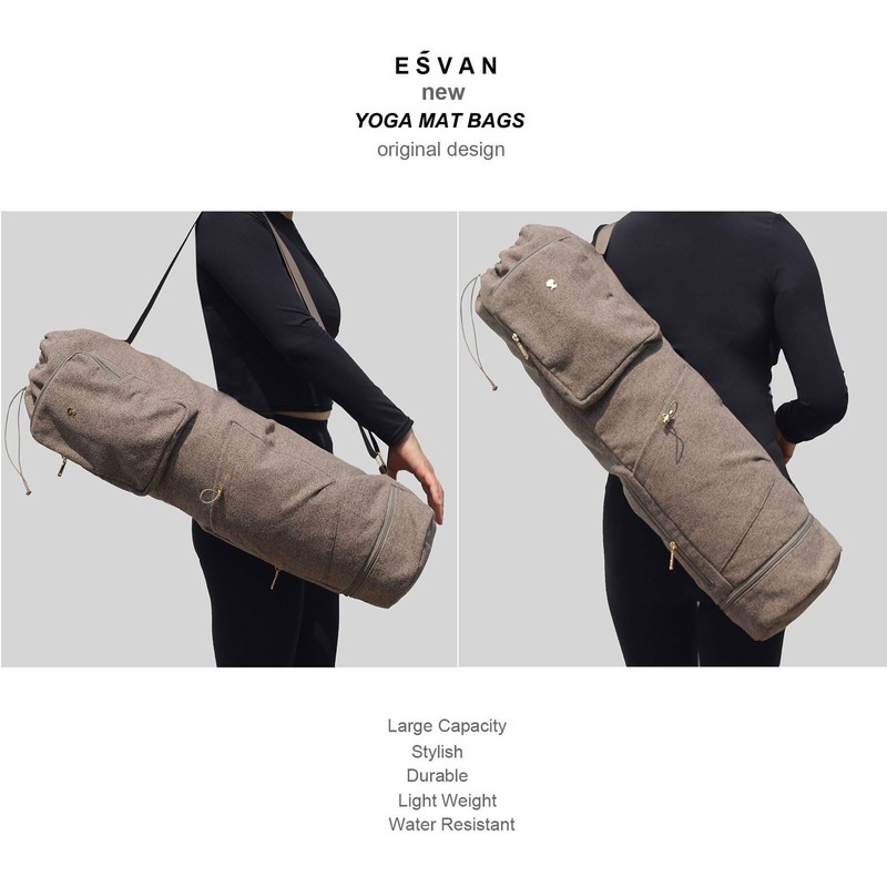 ESVAN Yoga Mat Bag with Multi Pockets Drawstring Yoga Mat Carrier Pilates Exercise Multi-Functional Storage Bag