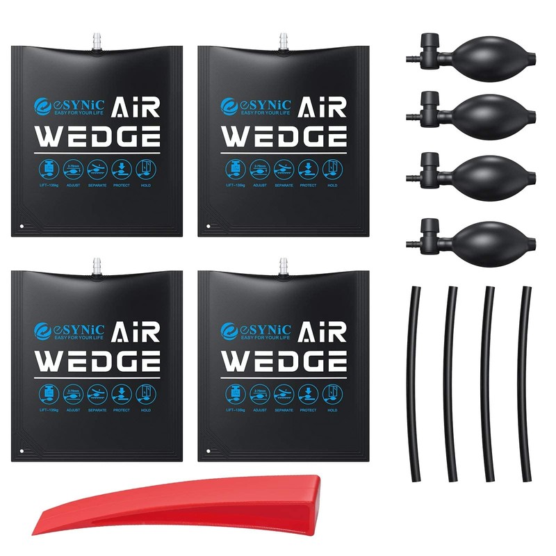 eSynic Pack of 4 Mounting Cushions, Air Wedge Pump, Window Mounting Aid, Hand Tools, Weight for Window Installation, Door, Car Repair