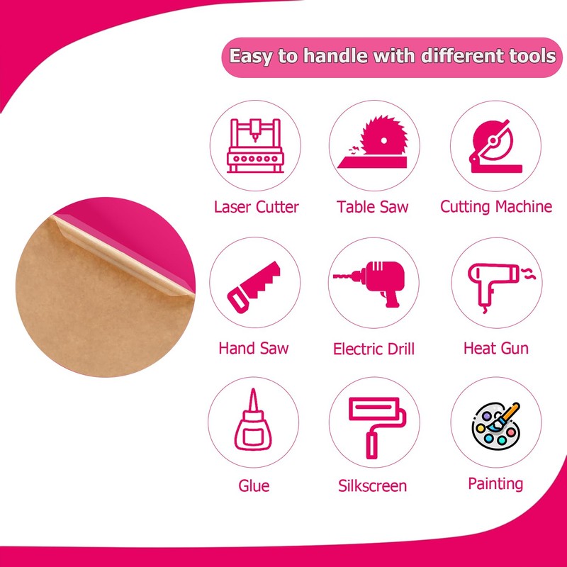 2. They cut easily with a CNC router, band saw, table saw, jigsaw, drill, etc. Great for crafts, laser-cutting, or any other purpose that calls for uniformly thick, easily shaped/cut material. No melting, scorching marks, or burns during laser engraving.
