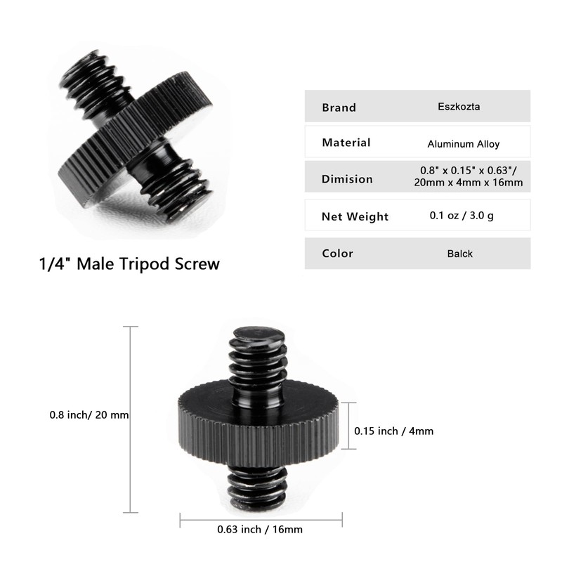 - [Precisely Made for Convenient Use] These precision made 1/4"-20 to 1/4"-20 (male to male) tripod screws meet international standard(Length: 20mm, Diameter: 16mm), enable you to gain more rig combination possibility and freedom in your photo shooting.