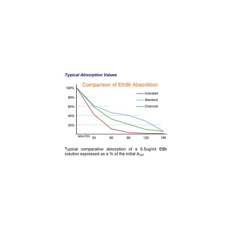 Efficiently remove Ethidium Bromide from solution and gels for safe and easy disposal. Now, with our NEW activation solution (included) our destaining bags demonstrate increased absorption efficiency speed relative to other similar products. Simply add ~5ml of activation solution to the bag prior to use.