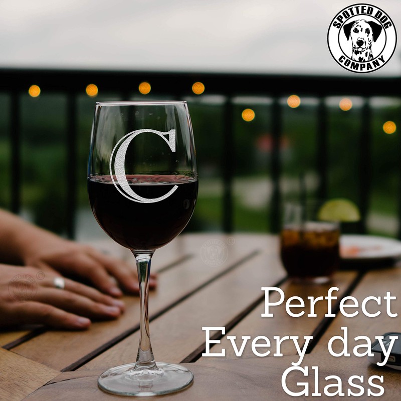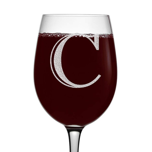 Etched Monogram 16oz Stemmed Wine Glass (Letter C)
