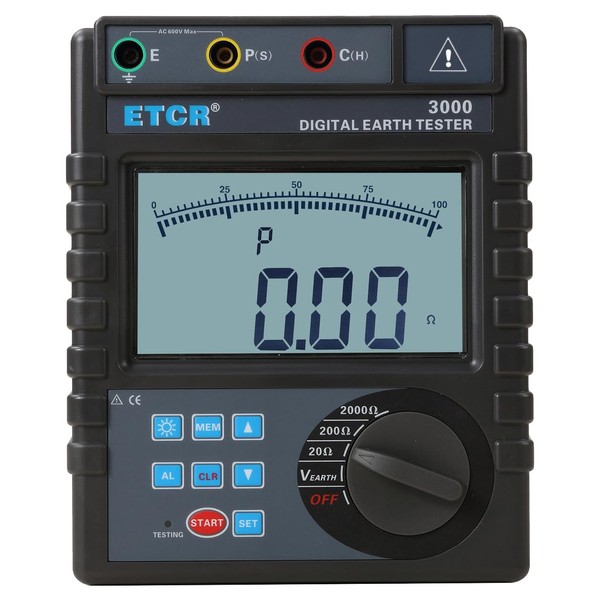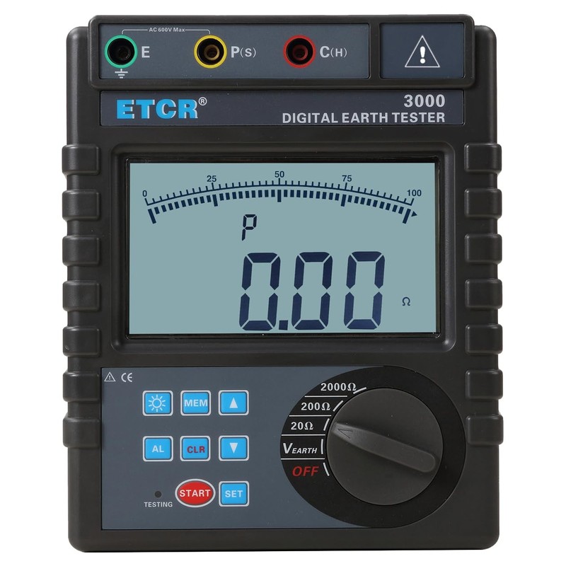 ETCR3000 Digital Earth Resistance Tester 3-Wire 2-Wire Ground Resistance Meter 0.01Ω-2000Ω Earth Voltage AC 0V-600V