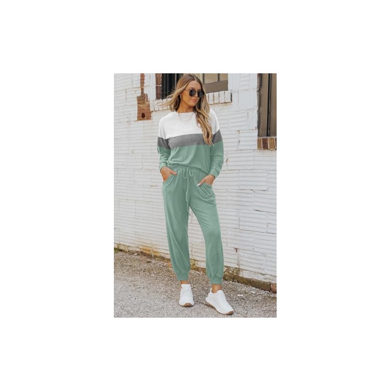 Women's Athletic Clothing Sets Features: Two piece set, Long Sleeves, Crewneck Pullover Top, Joggers Pants with Adjustable Drawstring, Solid Color, Relaxed Fit Style, Womens 2 Piece Loungewear Set.