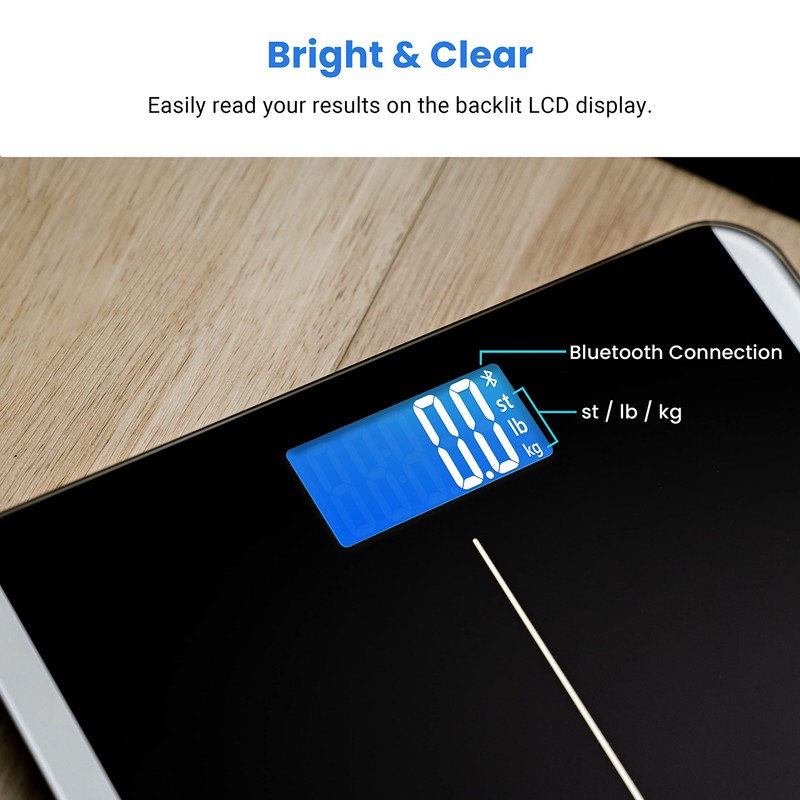 - Elegant Design: The large 11 x 11inch platform provides a stable base, while the backlit LCD display shows your measurements