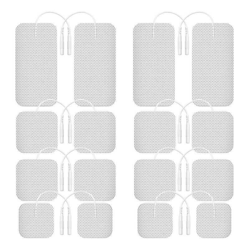 - 16 Pack with 3 Sizes: With 3 sizes: 2"x2" 4 pcs, 2"x4" 4 pcs, 1.5"x1.5" 8 pcs, the TEN Unit pads enable you to better enjoy comprehensive and pinpoint Electrotherapy for relieving pain and relaxation to your preference.