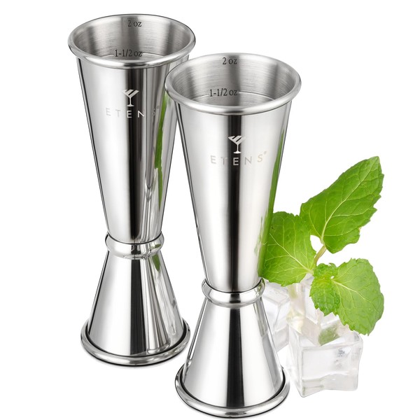Etens Japanese Jigger Set for Bartending 2 Pack - 1 oz 2 oz Cocktail Graduated Jigger | Easy Read Measurements Inside Shot Measure | Liquor Measuring Cup & Alcohol Measuring Tools| Metal Bar Jigger