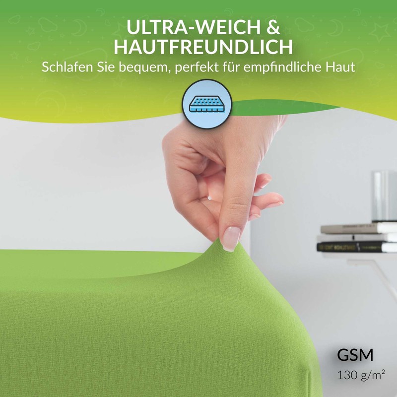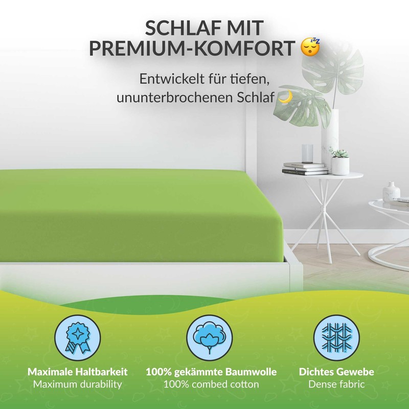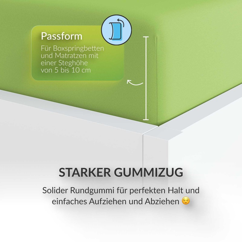 etérea Extra Jersey Topper Fitted Sheet 140 x 200 cm - 160 x 220 cm Apple Green up to 10 cm Height 100% Cotton Fitted Sheet Oekotex Bed Sheets Duvet Cover Bed Sheet Topper 140 x 200 cm - 160 x 220 cm