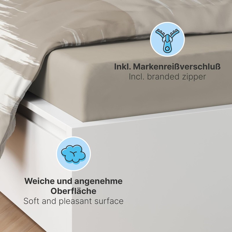 Microfibre bed linen is particularly suitable for summer, as these fabrics can optimally transport moisture away thanks to their special structure and thus significantly improve the sleeping environment. The smooth-running zip makes it easy to change duvet cover and pillows.