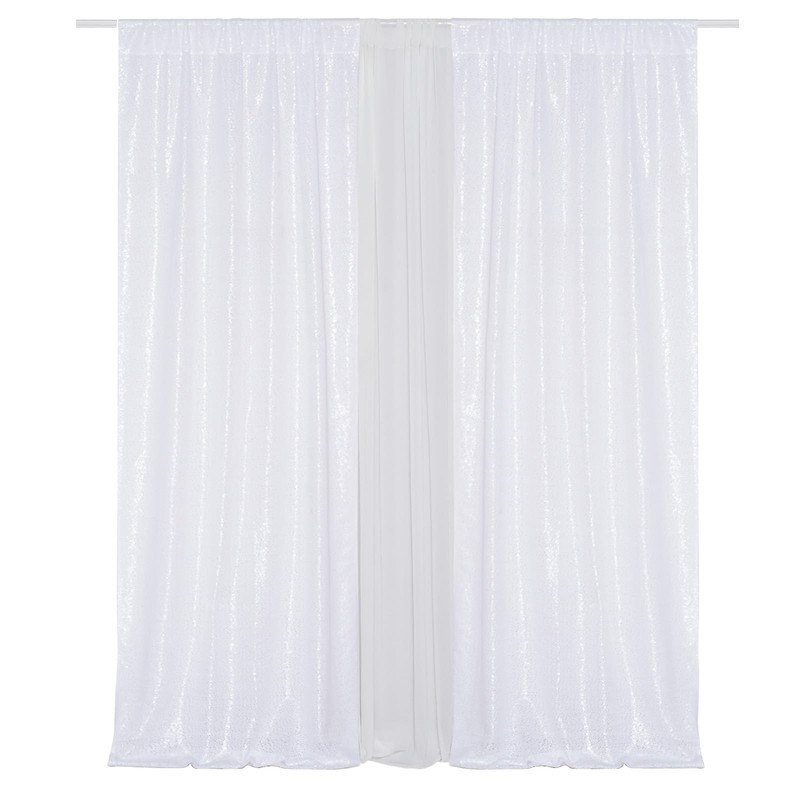 Eternal Beauty 2 PCS Sequin Backdrop Curtain, Sequin Wedding Backdrop for Christmas Party, Birthday (White 2FTx8FT)