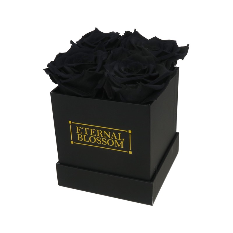 Eternal Blossom 4 Piece Preserved Real Infinity Rose Box | Lasts Over A Year | Black Box | With Gift Box (Midnight Black)