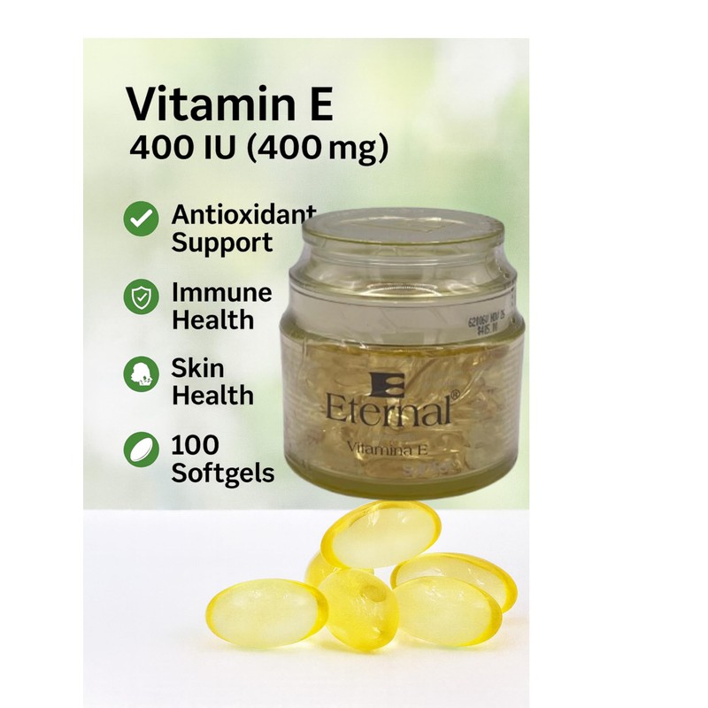 - Antioxidant support supplement: contains 99 softgels count bottle of Eternal Vitamin E 180 mg (400 IU) dl-Alpha Softgels for a 300-day supply