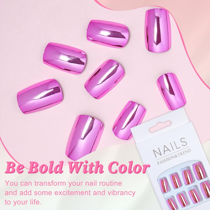 - Mirror Shine Chrome Nails Press on: Chrome metal reflection designs, the mirror-like finish of our metallic nails press on is truly captivating. Whether in natural light or under artificial lighting, your chrome press on nails square will radiate a dazzling, eye-catching brilliance.