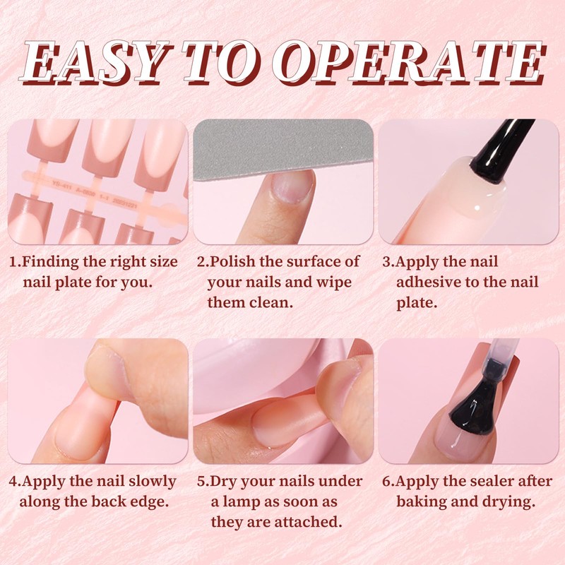 - Classic French Tip Press on Nails: The short square shape nails are sleek and modern, and our french press on nails come pre-painted with white french nail tips and designed with sheer pink nails. This short square fake nails kit provides a natural pink color, glossy finish, square shape, and short length press ons nails