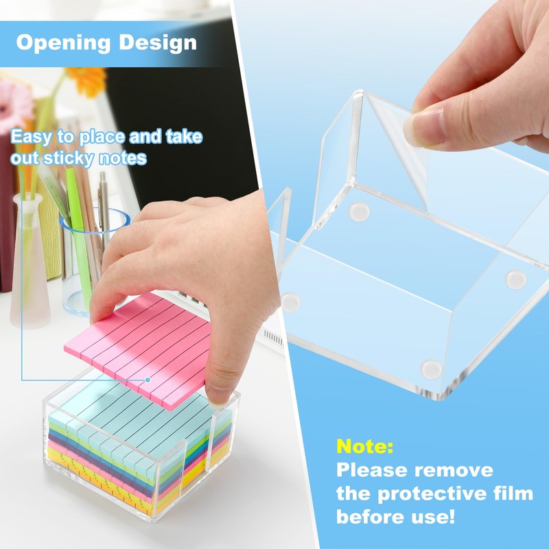 - Crystal-Clear & Sleek Design:This sticky note holder is crafted from premium, transparent acrylic, offering a modern and minimalist aesthetic that seamlessly blends with any desk or office decor. Its sleek, see-through design ensures your notes are always visible and easy to access while adding a touch of sophistication to your workspace.