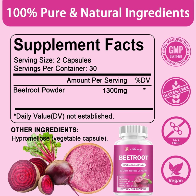 etheray Beetroot Capsules - Beet Root Powder Capsules - Beetroot Powder Suppo...