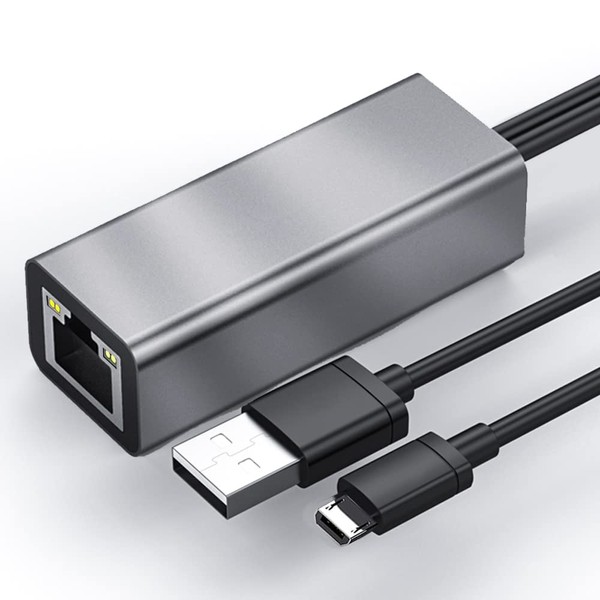 Ethernet Adapter for Fire TV Stick Google Home Mini Chromecast and More Streaming TV Sticks 10/100Mbps Network Micro USB (A) to RJ45 Ethernet Adapter with USB Power Supply Cable 3.3ft (Gray)