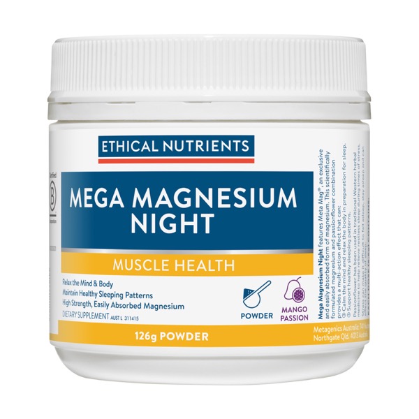 Available in a delicious mango passion powder that you can drink hot or cold before bed. Make Mega Magnesium Night part of your nightly wind-down routine.