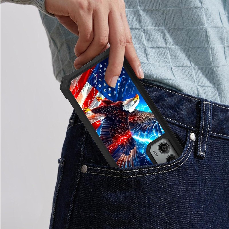 ETLKJVBL for Moto G Stylus 5G 2025 Case with Tempered Glass Screen Protector - American Flag Eagle Military Grade Shockproof Dual Layer Protection for Style-Conscious Men and Women