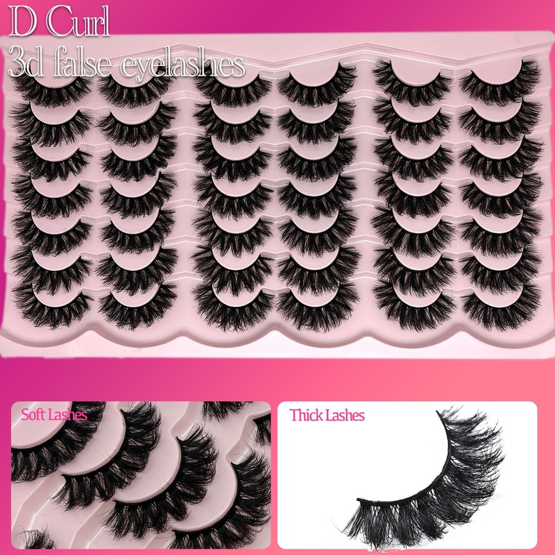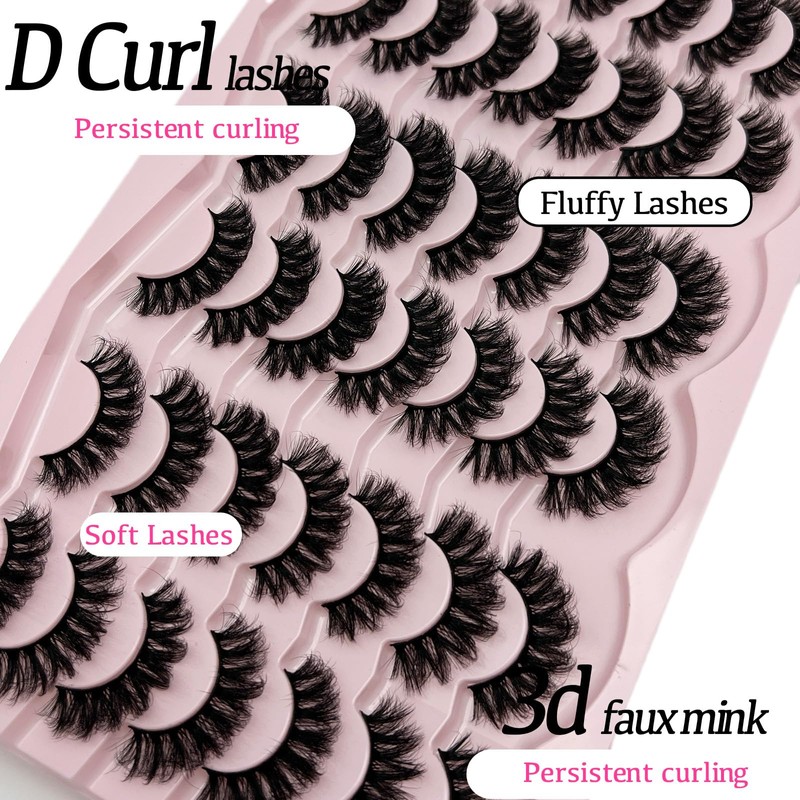 etokdos D Curl Lashes Mink Fluffy Faux Mink Eyelashes Long Dramatic Lashes Pack 18mm Volume Thick Big Fake Eyelashes Bulk