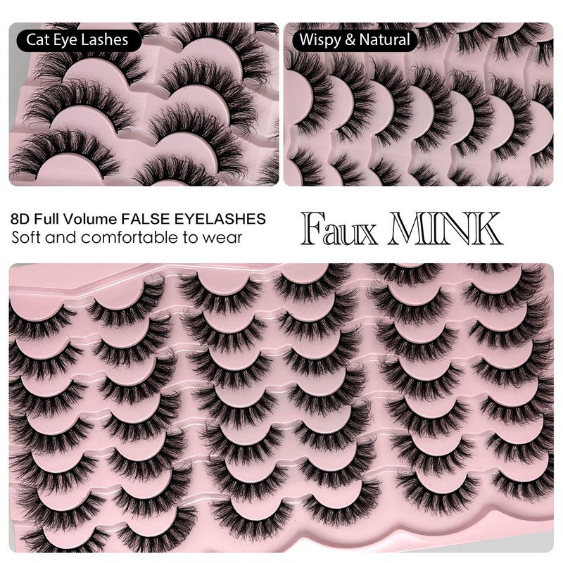 - Soft Lightweight Faux Mink Eyelashes: These fake eyelashes pack are made of high-quality synthetic fibers with soft and flexible band that offering a lightweight, no-burden wear.