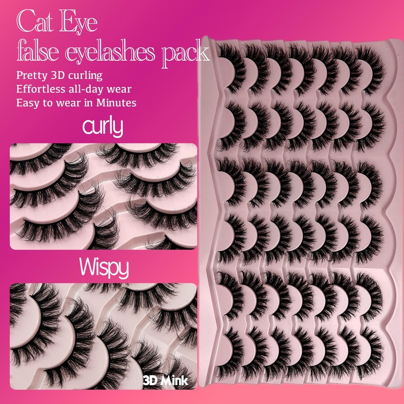 - 21 Pairs Eye Lashes Pack:The lashes pack with cat eye lashes natural look and wispy lashes cat eye.The 3d fluffy lashes design provides a subtle yet striking 3D lashes effect.So your makeup stays fresh from dawn to dusk