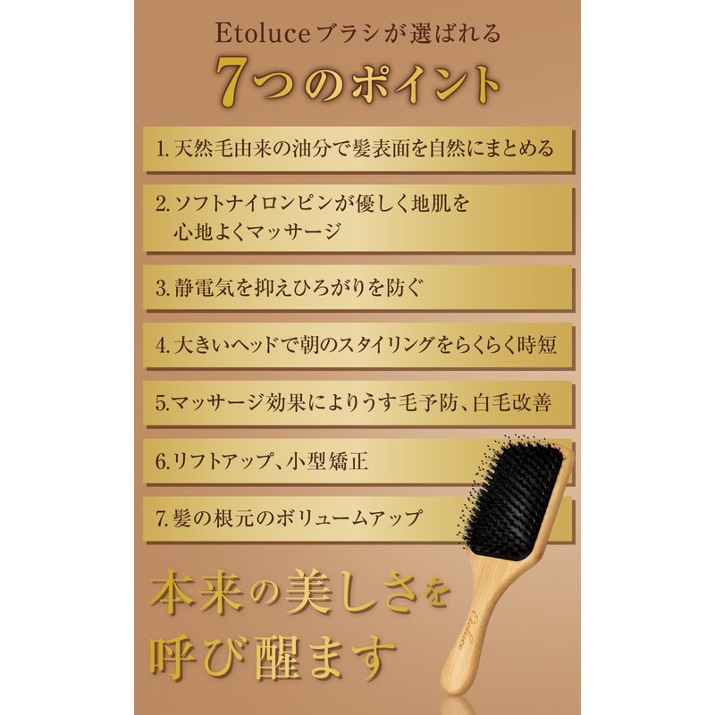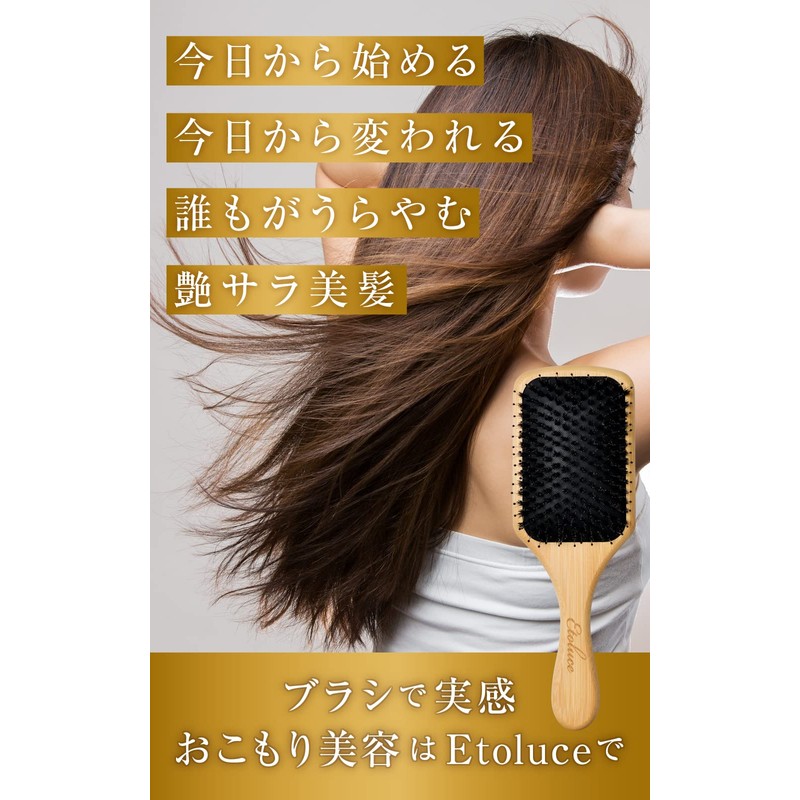 Etoluce Natural Pig Hair Brush, Tangle-Free Comb, Scalp Massage, Japanese Maker, Glossy, Smooth & Beautiful Hair, Brushing Care (Basic)