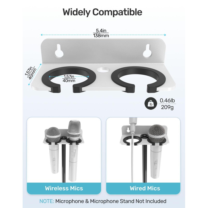 - 【Essential Accessory for Musicians】Ideal for performances, home studios, churches, wedding events, or professional recording setups, this multi-mic holder securely stores up to 2 handheld microphones—whether dynamic, wired, or wireless. Its refined white finish makes it perfect for musicians, church services, DJs, karaoke enthusiasts, and modern entertainment scenarios.